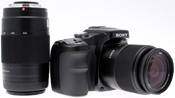La Sony Alpha 100 raccoglie l'eredità della Minolta Dynax 5D, della quale in pratica rappresenta l'evoluzione. Abbiamo avuto modo di provare il kit DSLR-A100W dotato di corpo macchina, zoom standard (DT 18-70mm F3,5-5,6) e teleobiettivo (75 - 300 mm F4,5 - 5,6). Il parco ottiche è comunque vasto potendo contare su più di 20 obiettivi Sony e Carl Zeiss e anche su tutto il parco lenti Konica Minolta con innesto a baionetta tipo A.