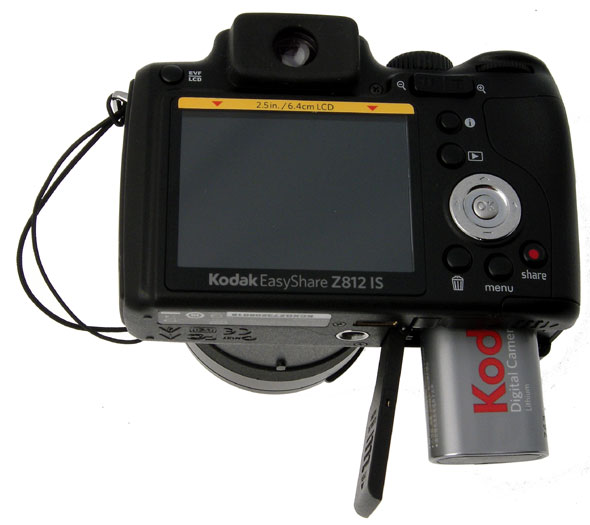 Esempio di fotocamera che accetta batteria proprietaria e stilo