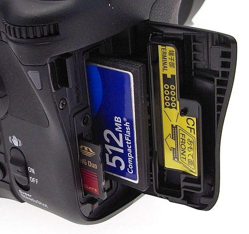La Sony Alpha 700 tradisce la sua vocazione high amateur e non professionale nella gestione dei supporti di memorizzazione. I due slot possono ospitare schede Memory Stick e Compact Flash, ma nella gestione dei due supporti emergono alcuni difetti. Innanzitutto la macchina non determina automaticamente quale supporto sia inserito, ma questo parametro va impostato dal menu. Ad esempio se è impostata l'opzione CF e si inserisce una scheda Memory Stick la fotocamera non vedrà spazio disponibile per gli scatti fino al cambiamento dell'opzione nel menu.