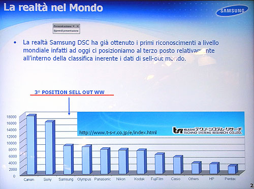 Alcuni studi di mercato mostrati in conferenza stampa danno Samsung al terzo posto nella produzione mondiale di fotocamere digitali, con uno share sul mercato italiano pari al 10%. Il dato delle sole fotocamere compatte è anche più positivo e dava a febbraio il produttore coreano attestato al quarto posto del mercato italiano con una quota di mercato pari al 11,3%.