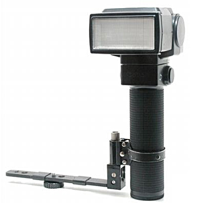 3.Esterni a torcia: hanno le stesse peculiarità dei flash cobra ma dispongono di una maggiore potenza luminosa che viene assicurata da un’unità di alimentazione separata. Proprio per questo motivo il loro peso è discreto e viene sostenuto non dalla slitta, ma da una staffa laterale; cosa che per altro permette di ridurre l’odiato effetto occhi rossi ed illuminare una porzione più ampia della scena.