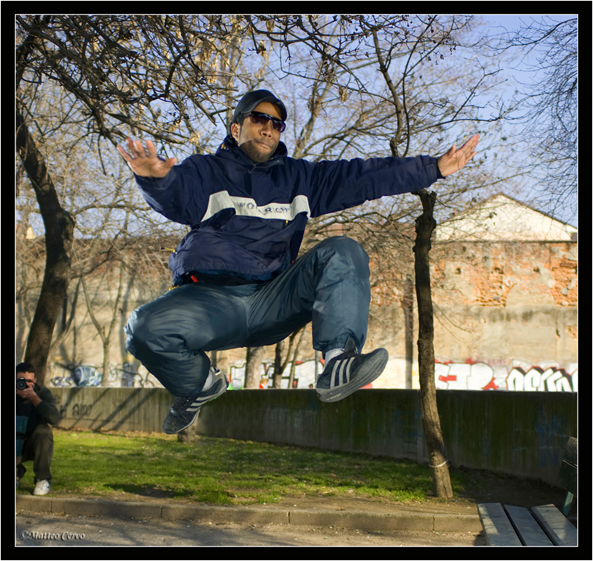 In questa foto dal titolo “Fuga dai paparazzi”, il soggetto è stato illuminato tramite tecnica high synch utilizzando tre flash wireless disposti intorno al soggetto; I parametri di scatto sono: 1/1250 @ f/2,8 ben al di sotto del tempo di synchro flash e con il diaframma a tutta apertura.
