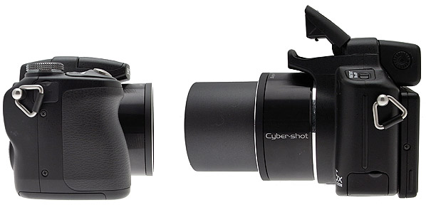 La Sony DSC-H50 si presenta con un corpo di dimensioni e peso leggermente più contenuti a quello delle reflex più leggere con obiettivo standard. All'accensione l'obiettivo, solitamente riparato da un tappo con meccanismo di ritenzione a due lamelle, sporge di circa 4cm, che diventano pochi di più all'estensione massima dell'ottica. A fronte di un ingombro così contenuto quest'ultima offre una focale equivalente pari a 31-465 millimetri, un valore irraggiungibile da un solo obiettivo nel comparto reflex.