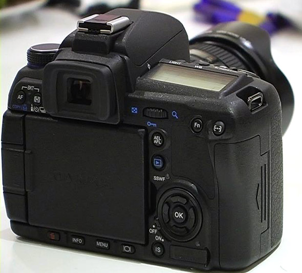 Il sensore al momento non è noto, ma di sicuro utilizzerà la tecnologia di riduzione della polvere SSWF e la stabilizzazione del tipo sensor-shift. Dotata di flash integrato supporterà flash esterni sulla slitta superiore e tramite uscita per cavo sync, posta a destra del bocchettone. Anche le dimensioni del corpo rispecchiano in modo evidente la parentela con la Olympus E-3 e si sposeranno bene con la serie di ottiche premium e professionali Zuiko Digital, che a volte appaiono sproporzionate sulle più piccole E-520 ed E-420.