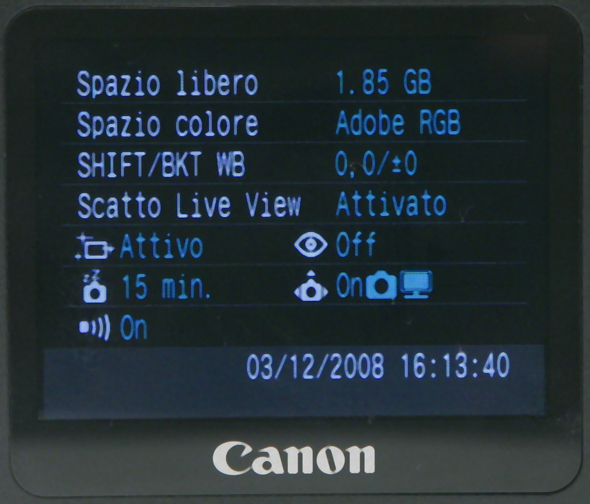 Il menù adotta la navigazione a schede mutuata da tutti i modelli Eos basati su DiGiCIII, a riguardo è bene spendere alcune parole: la navigazione a schede lo rende facilmente fruibile ed il nuovo ausilio di visualizzazione rapida attivato mediante la pressione del tasto DISP, presenta a schermo l’insieme di tutte le funzioni di ripresa attive, che possono essere selezionate e modificate tramite l’utilizzo del dial.