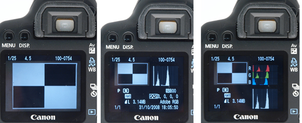 Durante la visualizzazione dello scatto è sempre il tasto DISP che permette di sovrapporre all’immagine informazioni come la qualità della stessa, data e ora di scatto, istogrammi ed informazioni di ripresa.