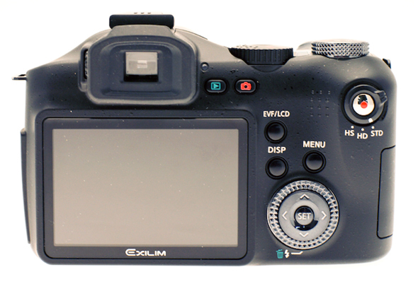 La disposizione dei comandi è divisa tra il dorso e la spalla: sul dorso prende posto il display lcd TFT da 236.160 pixel, a lato il dial di selezione provvisto di una ghiera concentrica. Appena sopra i tasti di accesso al menù, conversione di visuale tra monitor e mirino ed il tasto DISP alla cui pressione corrisponde la comparsa a schermo dei dati riguardanti la foto.