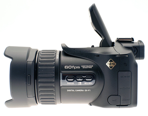 La F1 si presenta con una forma allungata, completamente nera, che mette in risalto lo zoom da 12 ingrandimenti; il guscio esterno è in plastica e l'impugnatura è buona. In particolar modo, impugnandola con entrambe le mani la sensazione di stabilità è notevole, un aspetto da non trascurare con una focale così spinta.