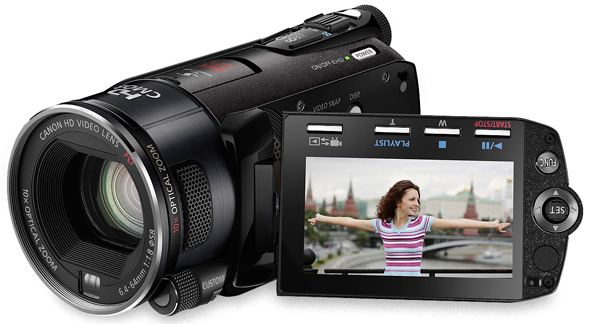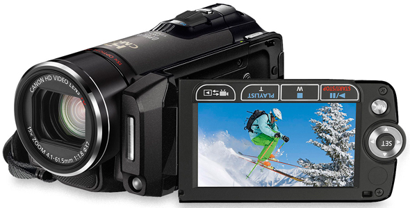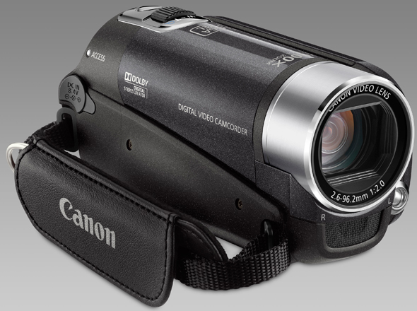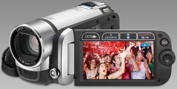 Tre famiglie di prodotti sotto il marchio Canon Legrìa, iniziamo dal set entry level FS: rappresentano il top della gamma standard definition, registrano su memoria Dual Flash, sia interna che removibile e sono disponibili modelli con 32 GB, 16 GB e 8 GB integrati. Il design è allungato e raccoglie in soli 230 g lente ed elettronica, l'adozione delle schede flash ha l'indubbio vantaggio di ridurre i pesi e nel contempo permette di aumentare i tempi di risposta del sistema prolungando la durata della batteria. È possibile infatti registrare circa 3 ore e 30 minuti di girato con una sola carica.