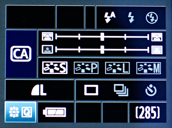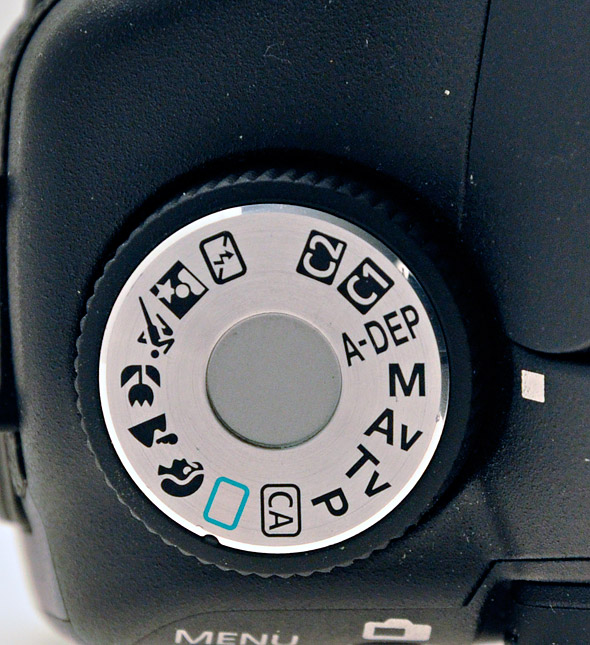 La ghiera delle modalità di scatto è comprensiva dei programmi automatici così come di quelli semiautomatici; rispetto ai modelli precedenti si arricchisce anche della modalità CA (Creative Auto). Tale modalità di ripresa consente all'utente meno esperto di poter regolare i parametri di scatto quali attivazione flash, profondità di campo e luminosità della scena e picture style, da un pannello mostrato a schermo e navigabile attraverso il joystick.