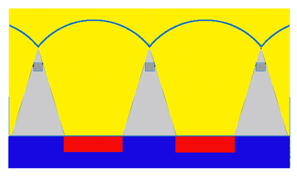 Tecnologia gapless: le microlenti contigue tra loro, generano una superficie interamente utile alla trasmissione della luce.