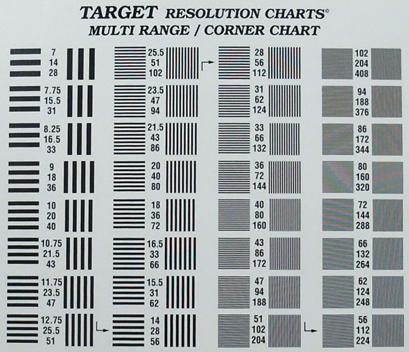 L'impostazione EXR a massima risoluzione non si discosta dai valori di risoluzione spaziale misurati per 100 e 200 ISO. Data la buona illuminazione del set up di prova possiamo affermare che il funzionamento EXR a massima risoluzione coincide con il funzionamento Program in condizioni di illuminazione ideale.
