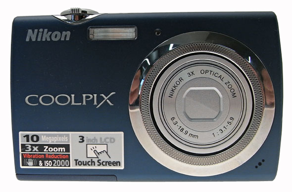 Frontalmente, Nikon Coolpix S230 non presenta linee particolari e mantiene uno stile sobrio: microfono, obiettivo, flash e spia autoscatto sono gli unici elementi della parte anteriore del corpo macchina. Il guscio plastico di cui è costituita è disponibile in diversi colori ed integra degli inserti cromati.