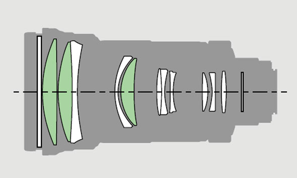 La grande lente frontale permette di raccogliere molta luce ma d'altra parte introduce problemi di flare nelle situazione di controluce e luce radente. Il flare è un alone solitamente bianco che affligge in maniera più o meno pronunciata tutti gli obiettivi. Alla chiusura del diaframma aumentano i problemi legati alla diffrazione della luce ed anche il flare diventa maggiormente visibile e porta con se una perdita di contrasto dell'intera immagine.