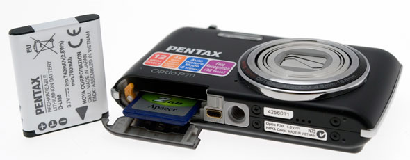 La batteria fornita in dotazione alla fotocamera è il modello D-Li88 agli ioni di litio che a piena carica assicura circa 220 scatti oppure 200 minuti di filmato (misurato secondo standard CIPA). Oltre alla memoria interna di 33,7 MB Pentax Optio P70 supporta schede di memoria SD/SDHC.