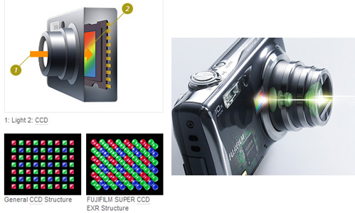 Il sensore, come dicevamo, è il Super CCD EXR in formato da 1/1,6" già visto sulla F200EXR, un elemento sensibile capace di lavorare adattandosi alle condizioni di ripresa: quando serve la massima risoluzione può registrare fino a 12 megapixel, mentre in situazioni in cui la priorità è la gamma dinamica o il contenimento del rumore è in grado si dividere in due i fotodiodi facendoli lavorare in modalità diverse. Abbiamo dedicato un approfondimento sulla tecnologia EXR nella recensione della Fujifilm FinePix F200EXR, che potete trovare a questo indirizzo.