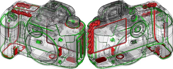 Sotto la pelle sono cambiate tante cose, aspetti alla base dell'innovazione tecnica che vede la nascita della Eos 7D. Partiamo analizzando la struttura metallica in lega di magnesio che costituisce lo scheletro del corpo macchina. Canon Eos 7D non si può dire tropicalizzata, prerogativa che contraddistingue unicamente la serie 1; d'altra parte l'assemblaggio di precisione e l'utilizzo di materiali ad alta densità, associato alla dotazione di guarnizioni nei punti sensibili, pone la Eos 7D in una posizione che potremmo definire "sigillata" rispetto agli agenti atmosferici.