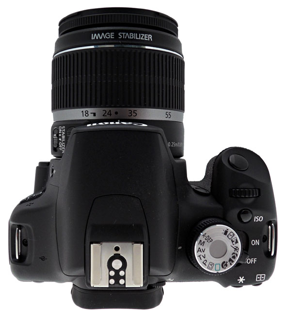 La spalla della fotocamera riporta sulla destra la ghiera di selezione dei programmi di scatto, il selettore di accensione e spegnimento, il tasto di modifica della sensibilità ISO ed il pulsante di scatto, oltre che la ghiera principale di regolazione dei parametri quali tempi e diaframmi. Al centro trova posto il flash a scomparsa integrato nella calotta che assicura un numero guida pari a 13. Questo ultimo è sovrastato dalla slitta a contatto caldo che permette di collegare alla fotocamera un lampeggiatore esterno.