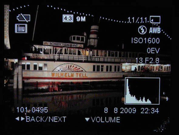 Alla prima accensione e dopo ogni cambio scheda di memoria, la fotocamera impiega qualche secondo per indicizzare il contenuto della memoria, gli avvii successivi risultano più rapidi e portano immediatamente a visualizzare sul display lcd l'inquadratura e le informazioni di ripresa in sovra impressione a quest'ultima. Tutti e quattro i bordi dello schermo sono occupati dalle icone che richiamano i valori di sensibilità ISO, tempo di otturazione e apertura di diaframma, modalità di ripresa, impostazioni flash, risoluzione di ripresa ecc.