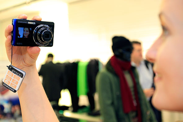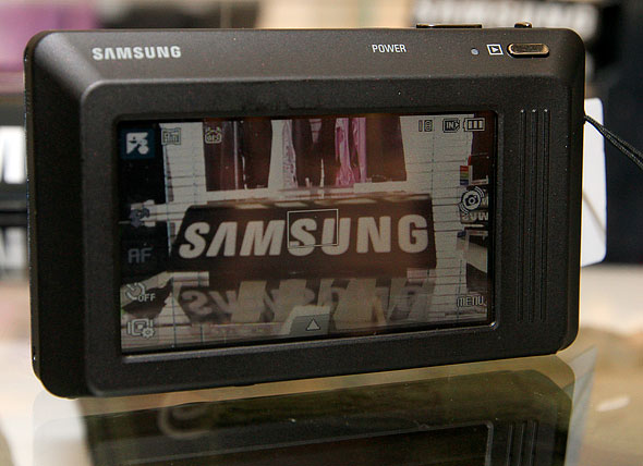 Quello che contraddistingue ST550 e ST500 è la presenza di un piccolo display da 1,5" sul fronte della fotocamera. Grazie all'interfaccia Gesture UI, il display viene attivato con una colpetto deciso delle dita e permette di visualizzare ciò che viene inquadrato anche quando si scatta un autoritratto o una foto di gruppo.