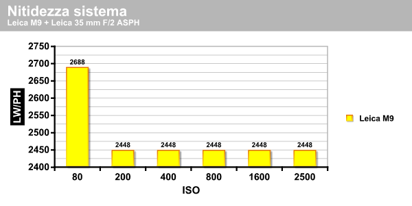 Come specificato all'inizio dell'articolo, Leica M9 propone una gamma di sensibilità che si estende da 80 a 2500 ISO, analizziamo il grado di nitidezza offerto dal sistema obiettivo-sensore-processore tramite le mire ottiche.