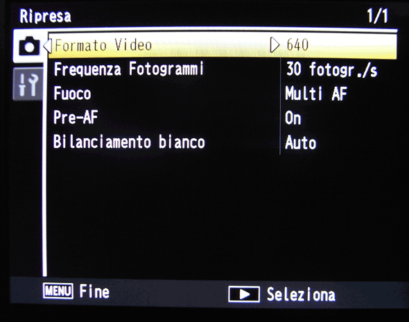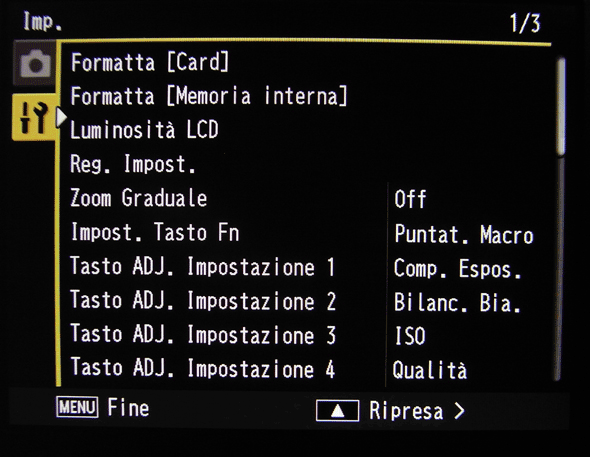 Il tasto SET risulta un valido sussidio durante la ripresa che evita di doversi addentrare nei menu e propone una serie di parametri personalizzabili che vengono richiamati a schermo sotto forma di icona e regolati direttamente con il joystick.