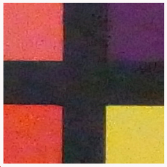 A seguito dei suggerimenti raccolti dai commenti dei lettori affianchiamo a partire da questa recensione una porzione al 100% delle mire ottiche alle Gretag Macbeth. Speriamo sia utile per fornire un migliore colpo d'occhio sui contributi del rumore e della corrispondente perdita di nitidezza al crescere della sensibilità di lavoro.