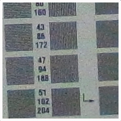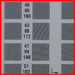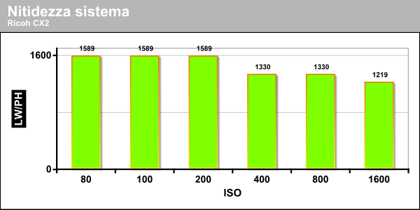 Come di consueto analizziamo il comportamento del complesso: fotocamera, sensore, elaborazione attraverso l'indagine alle mire ottiche e Gretag Macbeth. Il test alle mire mette in mostra un valore di nitidezza pari a 1589 LW/PH per le sensibilità da 80 a 200 ISO, già a 400 ISO la nitidezza cala per concludere a 1600 ISO con una confusione di dettagli che se osservata solo a partire dalle mire lascerebbe molto perplessi.
