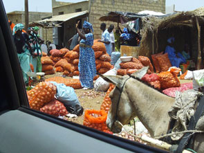 il mercato delle cipolle di Potou, una bottega di Saint-Louis, montoni al