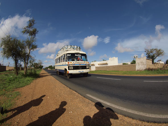 In particolare per le due settimane in tour per la nostra destinazione africana la valigia si è riempita di una fotocamera reflex Olympus E-620, di una videocamera tascabile Kodak Zx1, di un ricevitore GPS e navigatore outdoor Garmin Oregon 400t. La scelta è caduta su questi oggetti per diverse ragioni. La reflex Olympus è una delle fotocamere a specchio più leggere e piccole della categoria nella fascia delle entry-level evolute, tra le primo prezzo la E-450 della stessa marca, la Pentax XM e le piccole Canon e Nikon offrono ingombri minori, ma anche un range di funzioni meno ampio; l'abbiamo accompagnata con il leggero o poco ingombrante zoom standard ZUIKO Digital 14-42mm f/3.5-5.6 (28-84mm equivalenti), ma ci siamo anche lasciati tentare dall'ottica di fascia superiore ZUIKO Digital ED 8mm f/4, un fisheye diagonale con copertura di 180° sulla diagonale e focale equivalente in formato Leica a 16mm.
