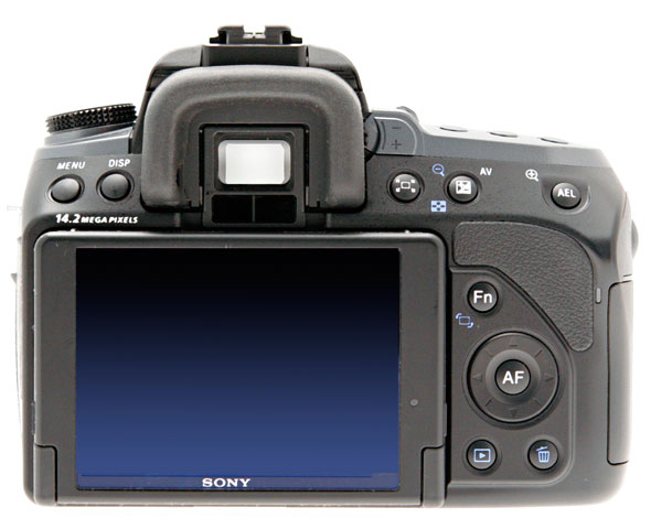 Le dimensioni del corpo sono contenute e questo è sicuramente un pregio, associato alla buona impugnatura che permette una presa salda anche a chi ha le mani grandi. 600 g in 137x107x84 mm permettono di tenere la fotocamere con l'obiettivo zoom standard in dotazione comodamente nella borsa o in un marsupio: la vocazione street di questa reflex non è da sottovalutare. Analizzando il corpo a partire dal dorso notiamo l'ampio display lcd TFT XtraFine da 3" e 921.600 punti, risoluzione che permette addirittura di verificare la comparsa di rumore digitale nelle immagini.
