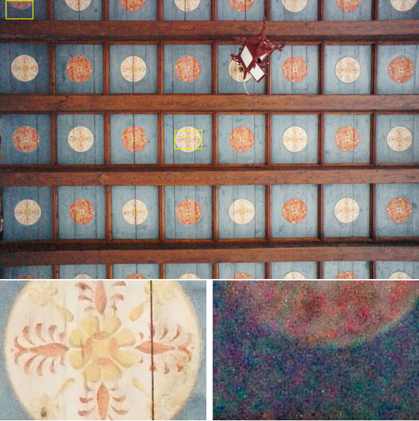 Non inseriamo in questa preview un'analisi della sensibilità ISO approfondita. Quelli provati durante il pomeriggio di test sono infatti campioni pre-produzione, non ancora dotati del firmware definitivo, che equipaggerà gli esemplari dedicati alla vendita. Anche il 16mm pancake utilizzato per le foto è ancora allo stadio preliminare, come si può notare da alcuni particolari, quale ad esempio una più marcata caduta di luce in uno degli angoli. L'accoppiata tra firmware positivo e ottiche non definitive ha prodotto foto che superano la sufficienza al centro anche a 12800 ISO, ma che cadono nella gamma dei risultati non commentabili agli angoli.