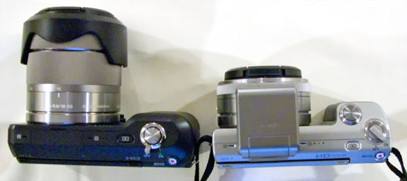 Le due fotocamere NEX sono pensate per essere semplici e intuitive, soprattutto per chi si avvicina a esse arrivando dal mondo delle compatte. Si spiega con questa ragione, ad esempio, la mancanza della ghiera dei modi, demandata a un comando virtuale, particolare di cui i fotografi abituati alle reflex sentiranno certamente la mancanza. In alcuni frangenti la ghiera è richiamabile con la semplice pressione del pulsante centrale della ghiera cliccabile posta sul retro, ma non lo è sempre, costringendo al passaggio dal menu e generando a volte confusione per la non unicità della procedura di accesso.