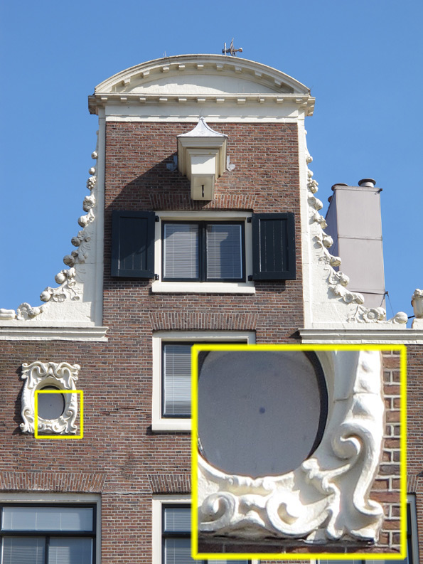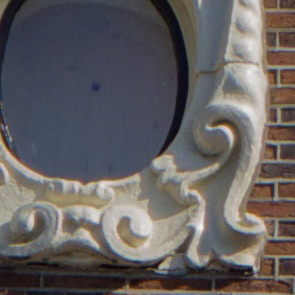 Sempre in questo esempio si può notare quanto Aperture sia stato efficace nel recuperare a pieno il dettaglio della seconda sedia illuminata dal sole, soprattutto nella zona bruciata anche dal riflesso della colonna chiara. Discorso simile anche per quanto riguarda il fregio delle finestre ellittiche della casa in mattoni qui sotto. Adobe Photoshop e Lightroom hanno restituito un risultato molto simile, con un recupero delle parti che nel file JPEG risultano bruciate molto naturale e ricco di dettaglio. Aperture si inserisce nella lotta introducendo però una tonalità leggermente avorio, che però in questo caso non disturba la naturalità della foto.