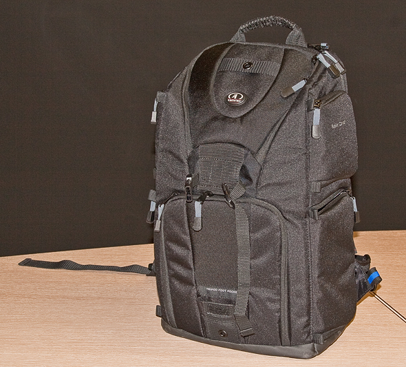 Lo zaino è in grado di trasportare nel vano inferiore, dotato di separatori personalizzabili con attacchi in velcro, offrendo accesso rapido su entrambi i lati, una reflex con telezoom montato e almeno due obiettivi e un flash cobra, con ampio accesso frontale. Il vano superiore è in grado di accogliere un ulteriore corpo con obiettivo montato (nel nostro caso una Canon EOS 60S con ottica 16-35mm F2.8) e altri accessori, ad esempio un flash cobra di medie dimensioni. Diverse tasche e vani permettono poi di stoccare filtri, panni, tappi e accessori di dimensioni ridotte. Lo zaino offre inoltre un vano imbottito in grado di ospitare un portatile fino a 15,6" di diagonale. La parte frontale ospita poi un sistema di aggancio per il trasporto del cavalletto, mentre una delle tasche esterne ospita la copertura antipioggia. Lo zaino è disponibile online con prezzi a partire da circa € 110.