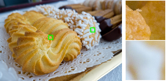 Naturalmente trattandosi di un sensore CCD di ridotte dimensioni è inutile pretendere prestazioni di rilievo alle alte sensibilità: già a 800 ISO in condizioni difficili, come ad esempio scarsa illuminazione, luci molto calde o con bilanciamento complesso, riproduzione di mezzi toni e toni scuri, il rumore è evidente e la battaglia per contenerlo mantenendo comunque un buon dettaglio porta all'insorgenza di molti artefatti, decisamente evidenti nei particolari al 100%.