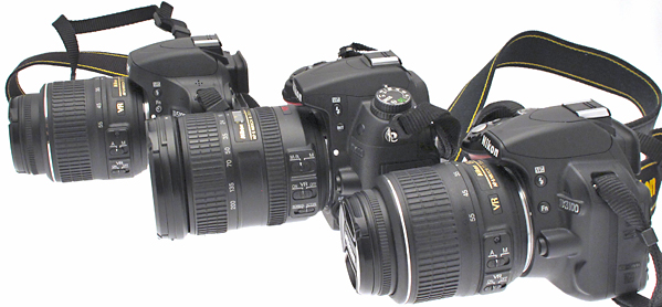 Peso e ingombro delle due entry level sono molto simili, così come la filosofia d'uso, mentre nel caso di Nikon D7000 ci si accorge subito di trovarsi di fronte a un prodotto di categoria superiore. Nikon D3100 e D5100 sono pensate anche per quel pubblico che fa ampio uso degli automatismi (anche chi ruota la ghiera su auto e si limita a inquadrare e scattare, senza preoccuparsi dei parametri scelti dalla macchina) e che si trova spiazzato da un numero troppo ampio di pulsanti, mentre la sorella più grande strizza chiaramente l'occhio a chi vuole avere tutte le impostazioni a rapida portata di mano per le regolazioni manuali. Un esempio è rappresentato dal maggior numero di tasti scorciatoia. Un altro esempio è il display LCD sulla calotta, utile per avere sempre sott'occhio tutti i parametri di scatto.