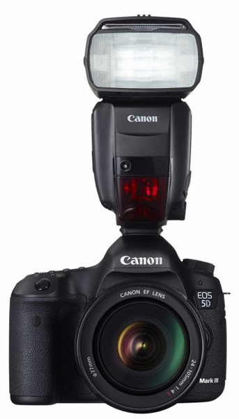 La fotocamera è stata presentata con una nuova gamma di accessori a partire dall'interessante flash TTL, Speedlite 600EX-RT che introduce una grande novità in casa Canon: la connettività wireless sia radio che ottica. Utilizzando un master Speedlite 600EX-RT o il nuovo trasmettitore Speedlite wireless a radiofrequenza ST-E3-RT, anch'esso messo in mostra con la nuova Canon EOS 5D Mark III, possono essere attivate a distanza fino a 15 unità flash 600EX-RT, posizionate fino ad una distanza di 30 metri.