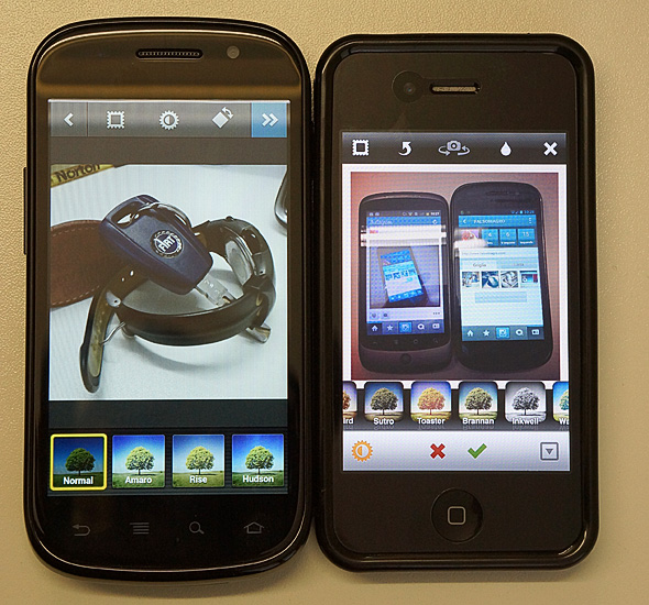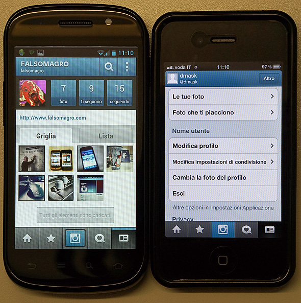 I risultati? I risultati dell'applicazione del medisimo filtro differiscono leggermente tra le versioni Android e iOS, non sappiamo se per caratteristiche intrinseche dell'app (che su Android deve gestire la compatibilità con un numero di terminali e di fotocamere ben maggiore delle sole versioni di iPhone) o volutamente per mantenere alto il livello della sfida tra i fan dell'una o dell'altra piattaforma. Nel caso di iPhone 4 l'applicazione ha salvato inoltre l'immagine a 1936x1936 pixel, mentre sui terminali Android si è limitata a un più misero 960x960 pixel.