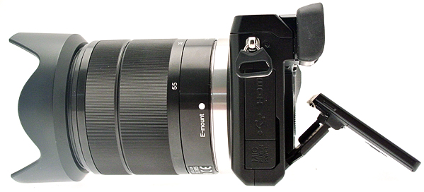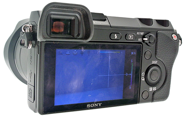 Di qualità anche il display LCD TrueBlack Xtra Fine posteriore, caratterizzato da 3" di diagonale e 921.000 punti di risoluzione. Il monitor offre un meccanismo per inclinarlo verso l'alto e il basso, anche se con un limitato grado di libertà. Tra i particolari prosumer di Sony NEX-7 rientra anche il connettore jack da 3,5 per il collegamento di microfoni esterni. Da notare che anche l'audio del microfono integrato è stereo.