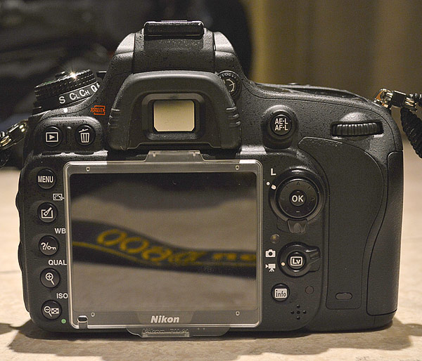Nikon D600 eredità dai modelli prosumer il comando a due ghiere concentriche a sinistra del pentaprisma (guardando la macchina da dietro), ma ha un oculare rettangolare, come quello delle serie APS-C. Gli amanti dell'oculare circolare devono fare riferimento ai modelli di fascia superiore quindi.