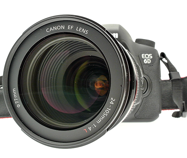 Canon EOS 6D viene venduta in versione solo corpo oppure con l'ottica Canon EF 24-105 mm f/4 L IS USM in kit: questo obiettivo è uno dei compagni designati di questa full frame, anche per le caratteristiche qualità/prezzo, per la presenza dello stabilizzatore e per la capacità di messa a fuoco leggermente macro. Viste le dimensioni della fotocamera l'accoppiata più equilibrata è quella che vede 6D a braccetto con l'obiettivo Canon EF 24-70mm f/4.0 L IS USM, di poco più leggero e con il barilotto meno esteso.