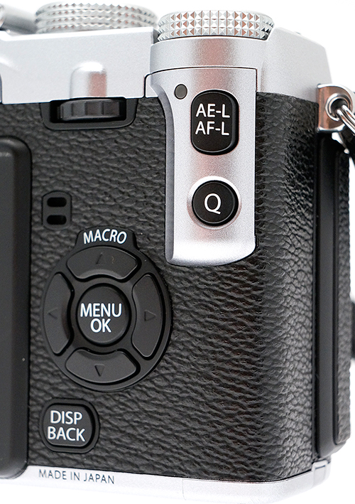 La presenza del tasto 'Q' che abilita a display il quick menu è un'innovazione inaugurata con X-Pro1 e che ha trovato, a ragione, utilizzo su tutti i modelli successivi della famiglia, con anche aggiornamenti firmware per i modelli precedenti al fine di dedicare uno dei tasti personalizzabili a tale funzione. Una volta familiarizzato con l'interfaccia risulta una scorciatoia molto comoda per gestire tutti i parametri più importanti dello scatto. Dopo la pressione del tasto 'Q' ci si muove nella griglia di opzioni che appare a menu con il pad direzionale e si possono modificare le impostazioni o attraverso il tasto centrale o direttamente utilizzando la ghiera posteriore.