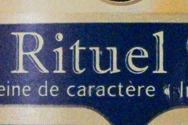 Alla sensibilità massima nominale, 6400 ISO, la texture è ancora intuibile: la si trova se già si sa dove andarla a cercare, ma il filtro di contenimento del rumore interviene più forte delle sensibilità precedenti e ne sfuma quasi completamente i contorni. Dettagli meno sottili, ma comunque molto fini, come il motivo di collegamento tra la zona blu e quella dorata sotto la scritta, sono riprodotti comunque in modo abbastanza fedele. Il motivo della bontà del JPEG è un file grezzo molto pulito, come si può vedere qui sopra.