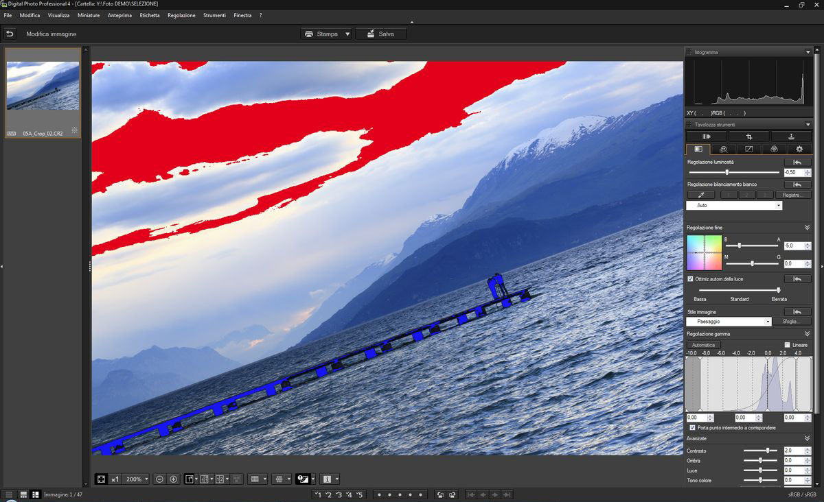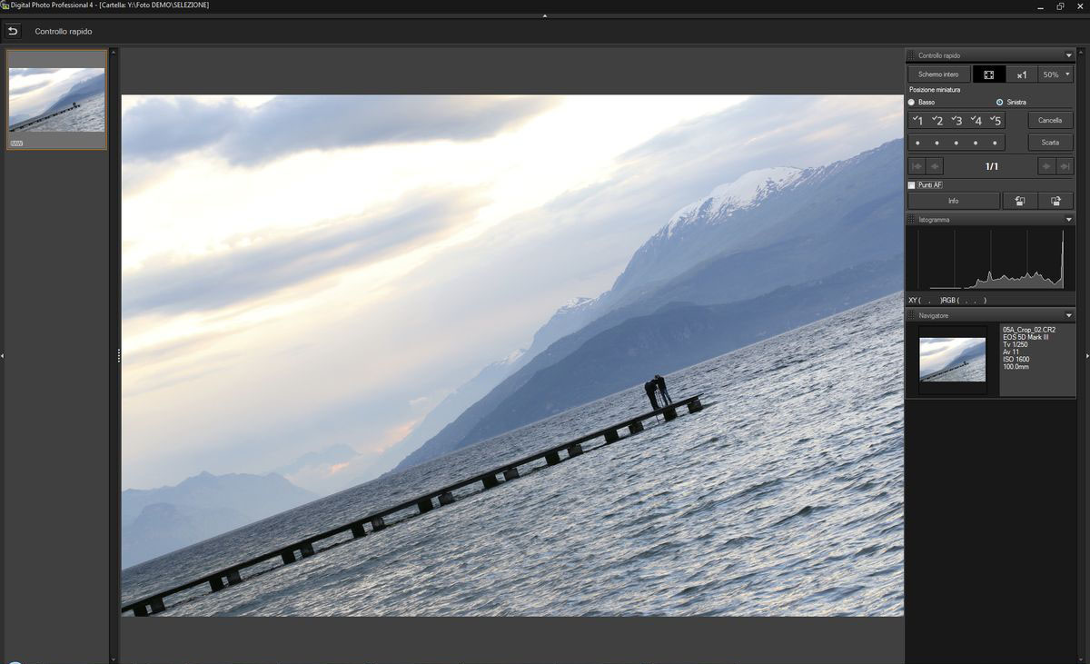 Secondo tradizione Canon, è possibile attivare o disattivare in qualunque momento la Tavolozza Strumenti (CTRL+T); ora, però Istogramma (CTRL+H) e Navigatore (CTRL+N) si possono richiamare indipendentemente. Il doppio clic su una miniatura apre come sempre l'immagine in una finestra separata per l'editing, ma questa, che per gli utilizzatori di DPP 3.x era l'unica (scomoda) via, è stata qui superata dal layout multiplo. Con questo layout acquista infatti finalmente senso la possibilità di richiamare velocemente la Tavolozza Strumenti per un ritocco rapido, mentre modifiche più importanti beneficiano della nuova modalità Modifica. È ora supportata anche la modalità dual dispaly.