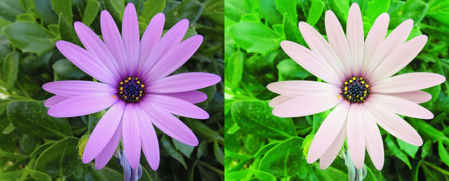 Un esempio d'uso dello strumento Bilanciamento del bianco a fini creativi - basta un click per alterare completamente un'immagine.