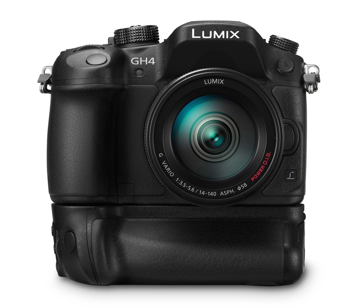 La Lumix GH4 con battery grip opzionale, rimasto invariato (e compatibile) dalla GH3.