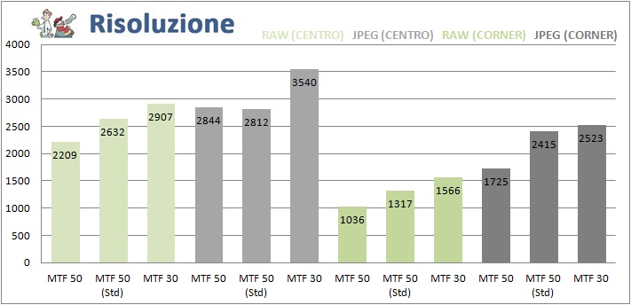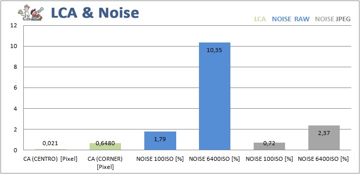 Il rapporto segnale/rumore, e di conseguenza il comportamento ad alti ISO, è uno dei punti di forza di questo modello. L'aberrazione cromatica ai bordi potrebbe essere più contenuta, considerata anche la ridotta escursione focale dell'ottica.
