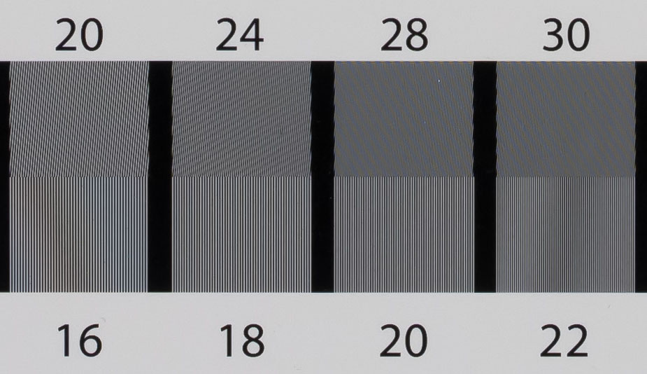 Avendo testato in precedenza altre OM-D, possiamo dire che proprio quest'ottica è stata in grado di fare la differenza, consentendo alla E-M1 di raggiungere un livello di dettaglio record per una MQT: oltre 2900 LW/PH nelle nostre condizioni standard di prova per il RAW e circa 2650 per il JPEG al centro del fotogramma, con un eccellente tenuta di nitidezza ai bordi. In realtà, osservando le immagini di prova il risultato del software appare leggermente ottimistico, parzialmente ingannato dalla "grana" superiore alla media che rende l'immagine anche visivamente più incisa. Diciamo che le linee convergenti mantengono una netta separazione, senza mostrare artefatti, fino a 2800 LW/PH per il RAW, il che è comunque un eccellente risultato.