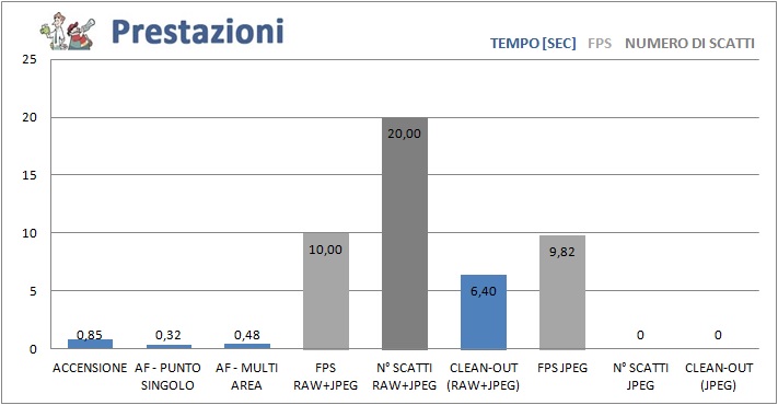 Prestazioni da ammiraglia. 10 fps reali e almeno una ventina di scatti utili in RAW (raffica infinita in JPEG) sono tutto ciò che un fotografo può desiderare.